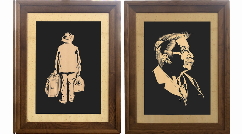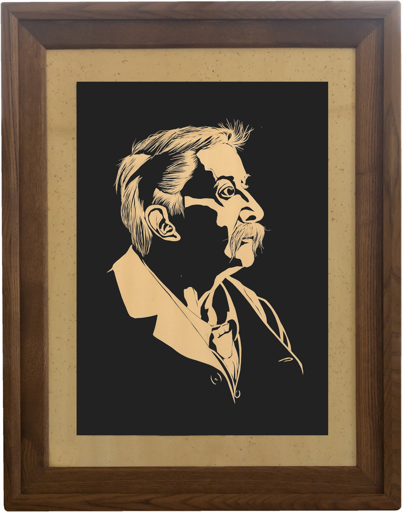 八木氏の紙切りは小刀・カッターナイフを一切使わずにハサミのみの制作で、「志太の木喰仏」、小泉八雲の「怪談シリーズ」など、多数の作品を制作しています。八雲の有名な肖像ですね。