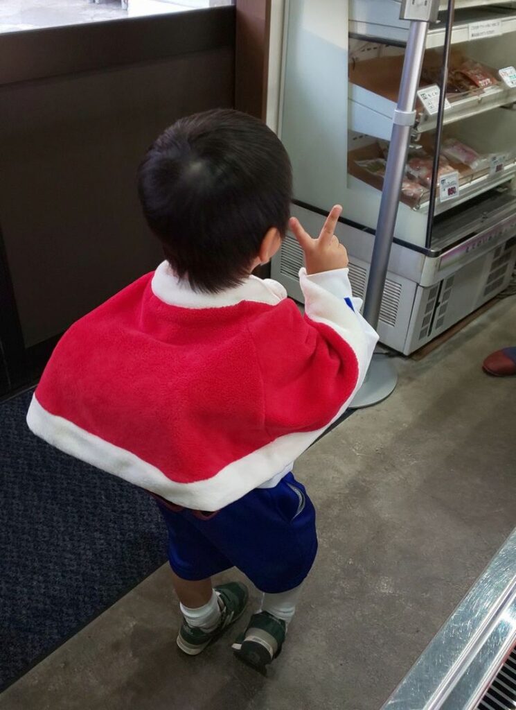 その可愛らしいお客様は、時々お母様と一緒にお買い物にいらしてくださるのですが、今回はサンタさんのマントを羽織って、私達を楽しませてくださいました。