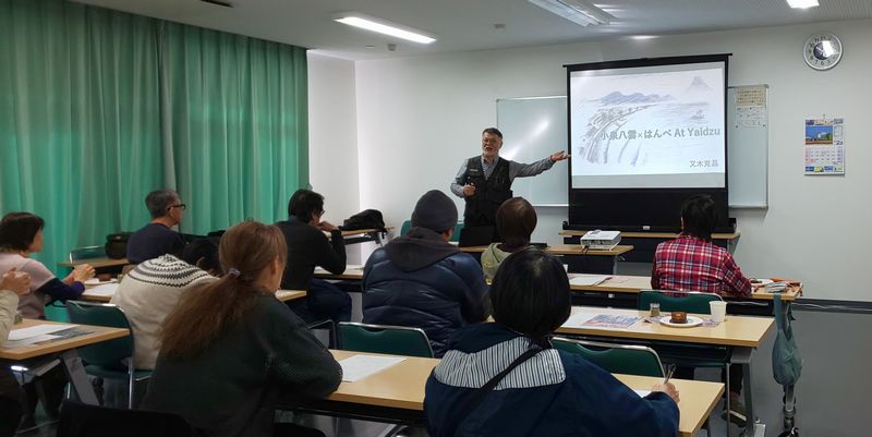 先日、2月5日(木)の午前中、焼津市の小川地域交流センターで「食を通じて知る八雲の世界」の講座が開催されました。前半を八雲研究家の又木克昌さんが、名著の一つ「At Yaidzu」を文学的に解説してくださり、後半は、クレオール料理研究家の金原純子さんが、「小泉八雲のレシピ帖」より弊社の「はんべ At Yaidzu」のアレンジ料理をつくってくださいました。