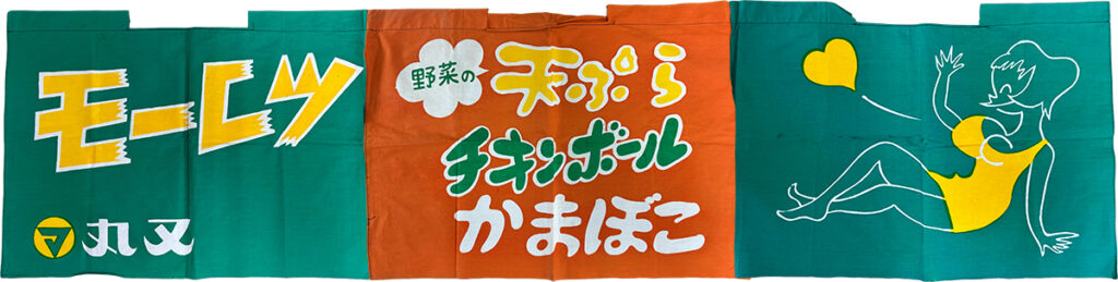 多くの方々に愛していただいた、昭和のヒット商品「モーレツ野菜の天ぷら」の暖簾です。