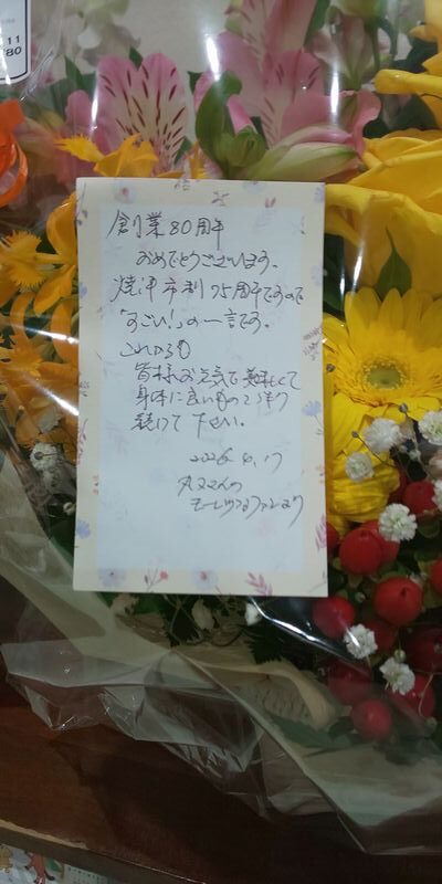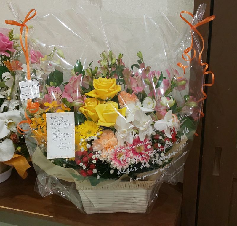 日頃ご愛顧いただいているお客様からお祝いのメッセージとお花のアレンジメントをいただいたのです!
